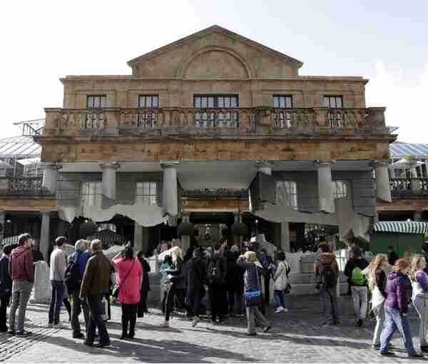 Kolonları kırılmış ve havalanıyormuş gibi görünen 12 metrelik binanın, özel dijital tekniklerle boyanması 500 saat sürdü.