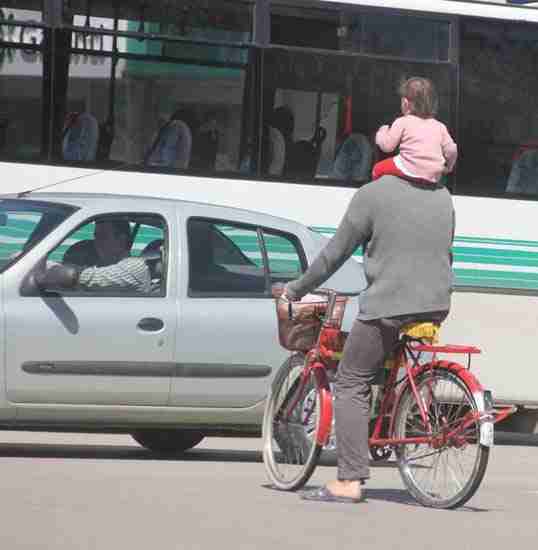 Olay , Merkez Seyhan ilçesine bağlı Baraj Yolu Caddesi’nde meydana geldi.Bir kişi çocuğu olduğu iddia edilen küçük kızı omuzlarına alarak bisiklet sürdü.