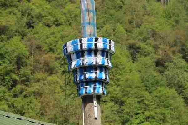 Tesisin yan tarafındaki bahçede atıl durumda bulunan elektrik direğine araba lastiklerini geçirip LED ışığıyla donatan ve minare şeklini veren işletme sahibi, daha sonra 200 metre ötedeki ahşap mescidi de buraya taşıdı.