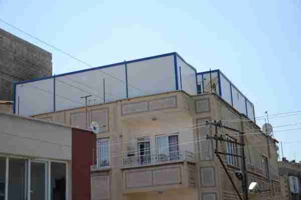 Bina sahibinin çatıya koyduğu konteynerlerin bir tanesini Suriyelilere 600 liraya kiraya verdiği öğrenildi.