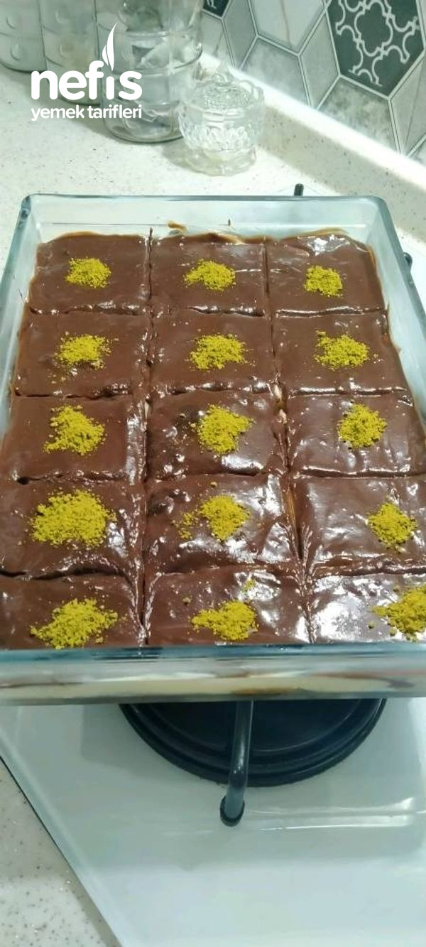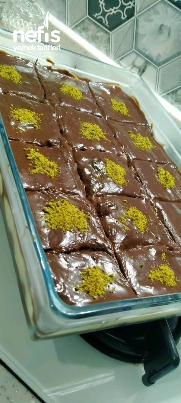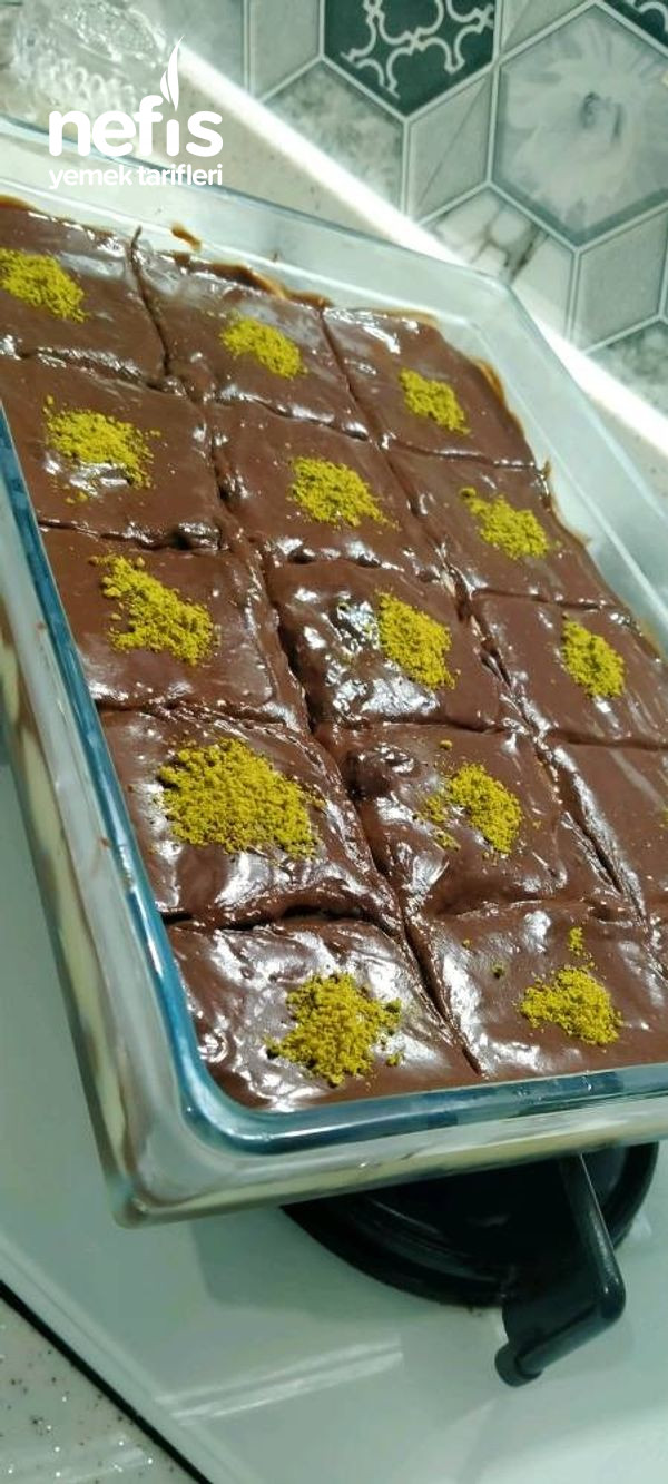 - Soğuyan çikolata sosunu da tatlının üzerine dökün ve üzerini isteğe göre antep fıstığı, fındık vs ile süsleyebilirsiniz.