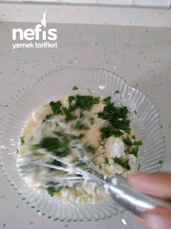 - Ardından ezilmiş peynir, kıyılmış maydanoz ilave edilir .