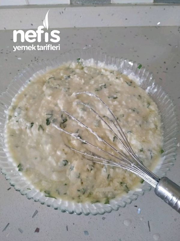- Peynir maydanoz hariç diğer malzemeler bir kapta iyice çırpılır.