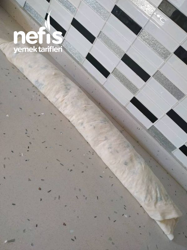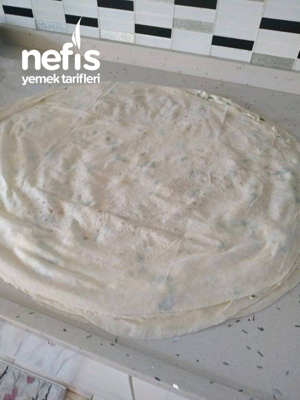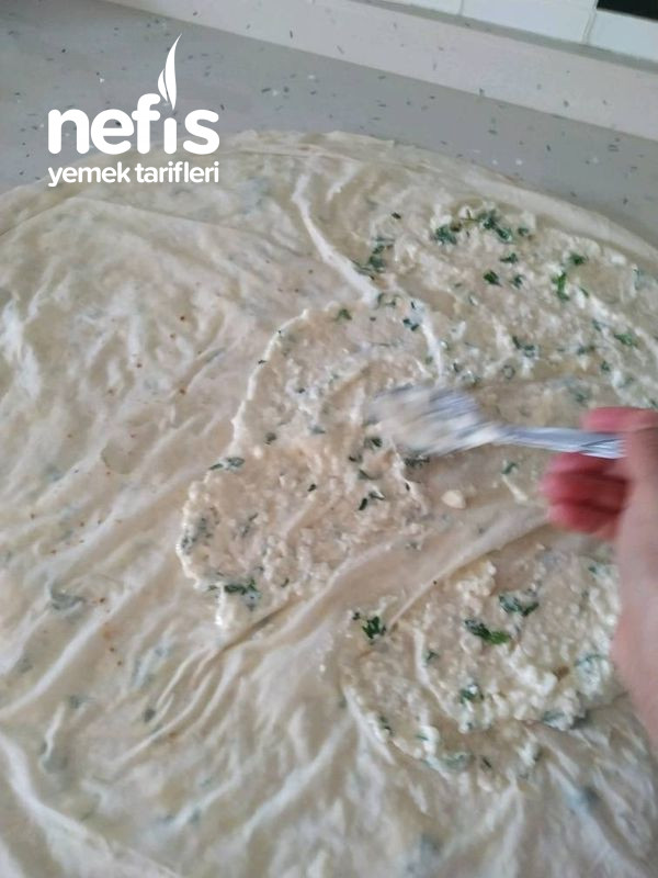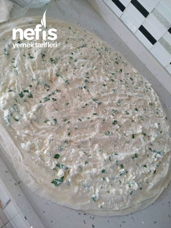 - Yufkayı tezgahta açıp arasına göz kararı her tarafına sürün.