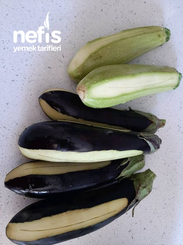 - Patlıcan ve kabaklara çizik atıp yağlayın ve tuzlayıp. 200 derece fırında kızarana kadar bekletin.