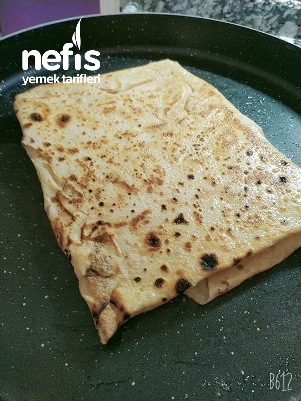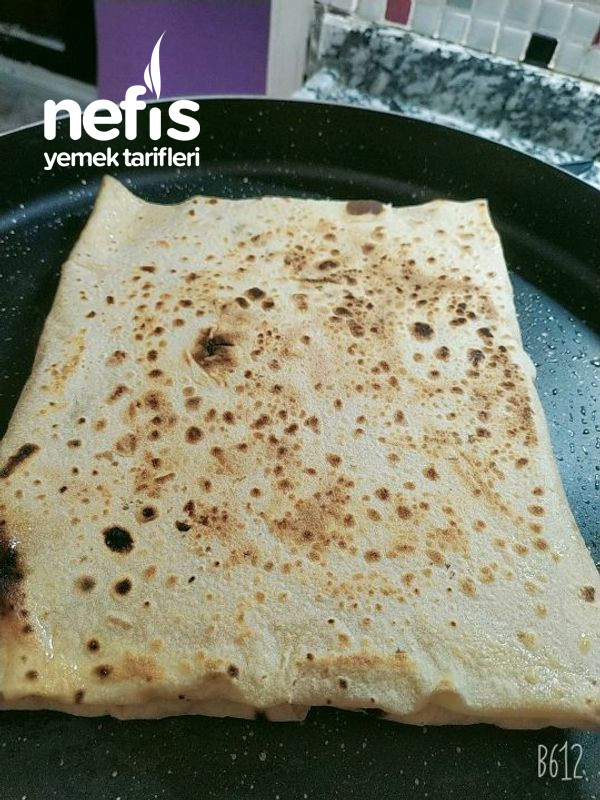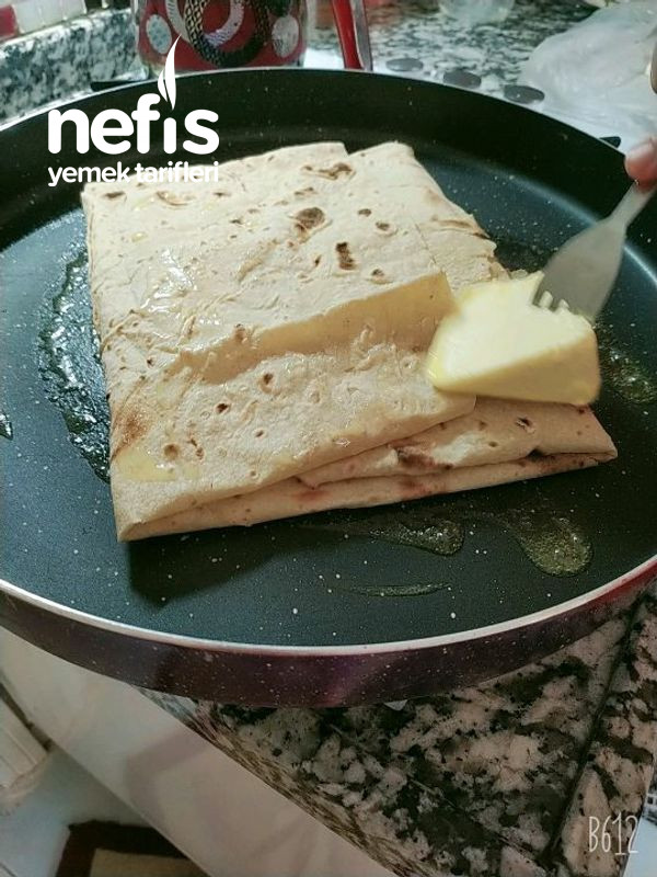 - Kalan iki tarafı da kapatarak önceden ısıtılmış ocaktaki tavaya tereyağını sürerek önlü arkalı pişirelim.