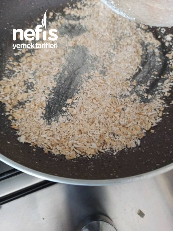 - Rondodan geçirip un haline getirdiğimiz yulaf ezmemizi tavada kokusu çıkana kadar kavuralım ve soğumasını bekleyelim.