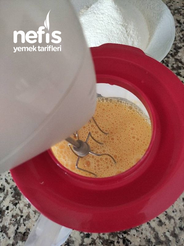 - Sonrasında unumuzu ekleyip çırpma işlemine devam ediyoruz.