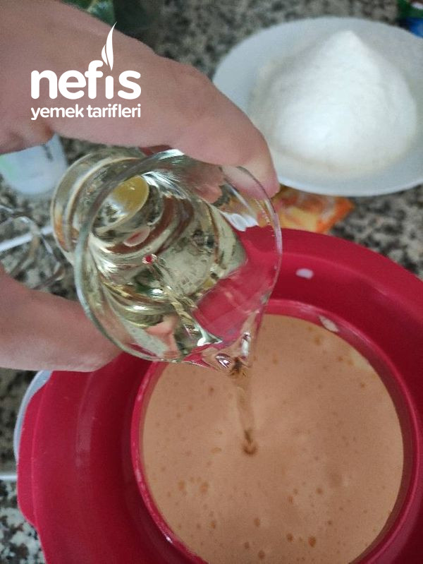 - Sütü, sıvı yağı ve limon suyunu da ekleyerek çırpmaya devam ediyoruz.