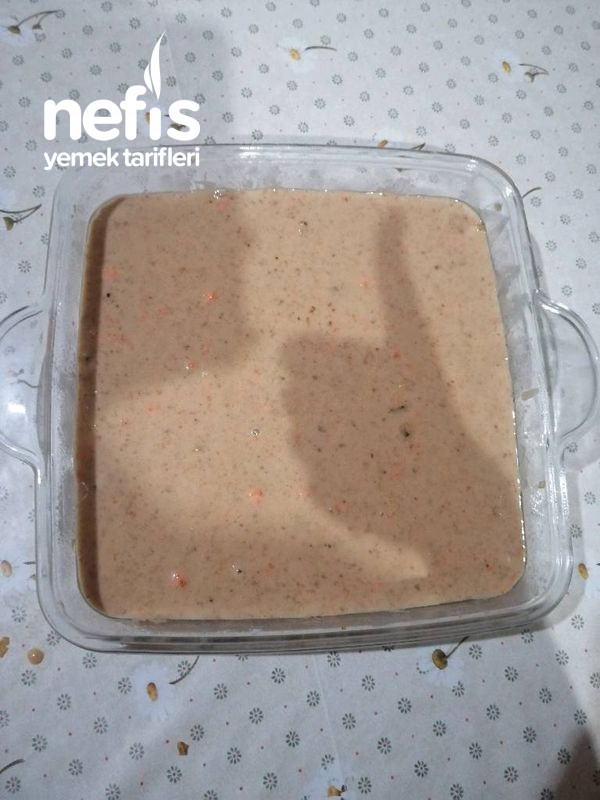 - Yağladığımız kalıba karışımın yarısını dökelim.