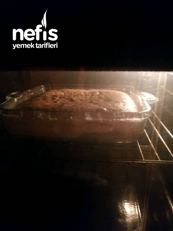 - Üzerine kalan kek karışımımızı da dökelim ve önceden ısıtılmış 200° fırında 25-30 dk pişirelim. (üzeri kızarıncaya kadar).