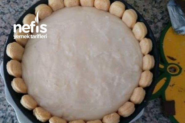 8. Üzerine tekrar süte batırılan kedi dili döşeyip kalan muhallebinin hepsini döküp düzeltiyoruz.