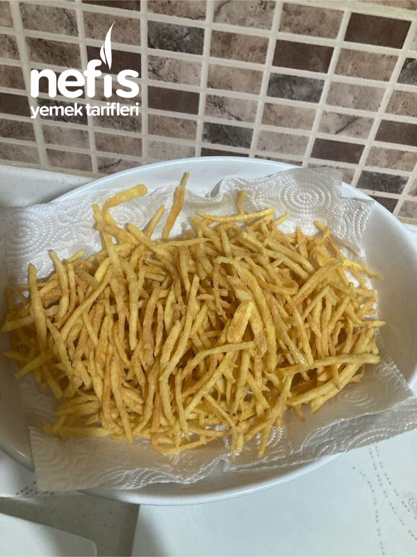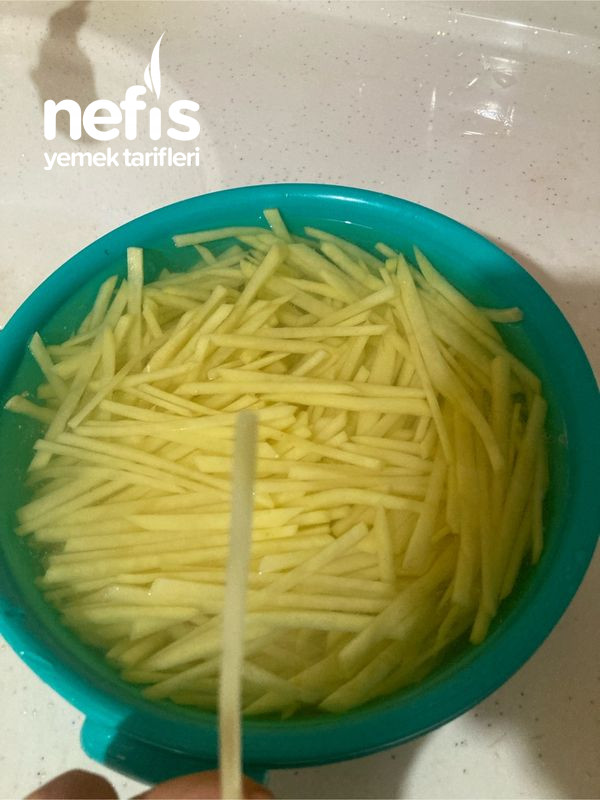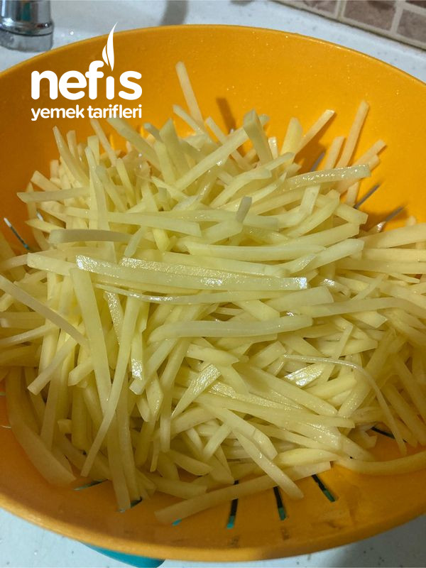 - Patateslerin ince olması önemli. Ben patatesleri kızartırken çıtır olması için biraz un ve nişasta karışımına buluyorum.