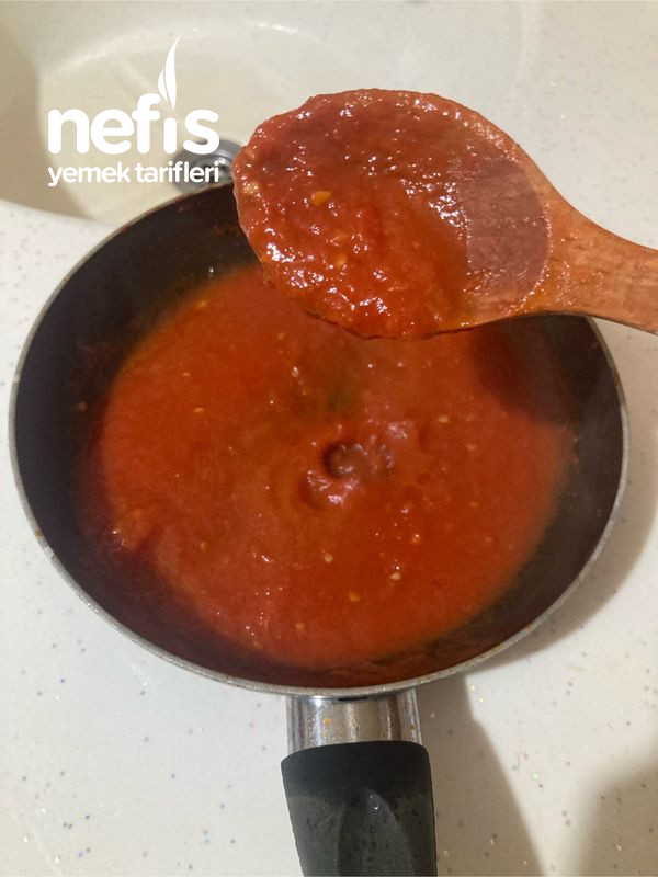 - 1 su bardağı su ekleyip çeken kadar pişirmeye devam edelim salçayla ve baharatlarla özleşmesi için.