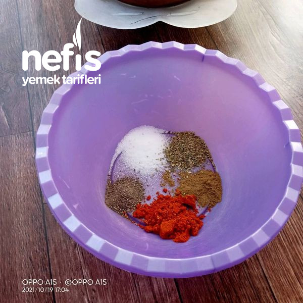 - 1 er tatlı kaşığı tuz,kekik, karabiber,kimyon,toz biber,pulbiber