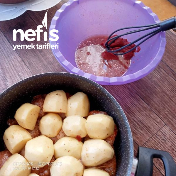 - Salça ve suyu çırpıcıyla sos haline getirip üzerine dökelim.