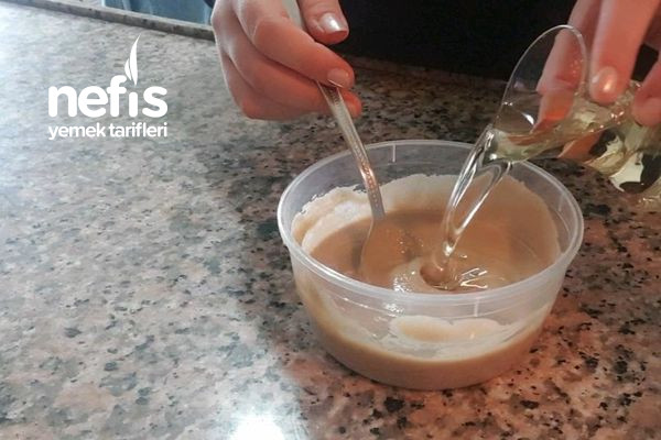 - Bir kapta tahin,şeker ve yağı karıştıralım.