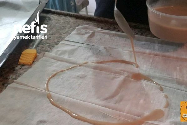 - 1 adet baklavalık yufkaya 2 yemek kaşığı serpiştirip güzelce dağıtalım.