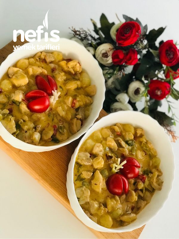 - Kreması ile baharatlarını da ekleyip son 5 dk altı kısık olarak pişiriyoruz.