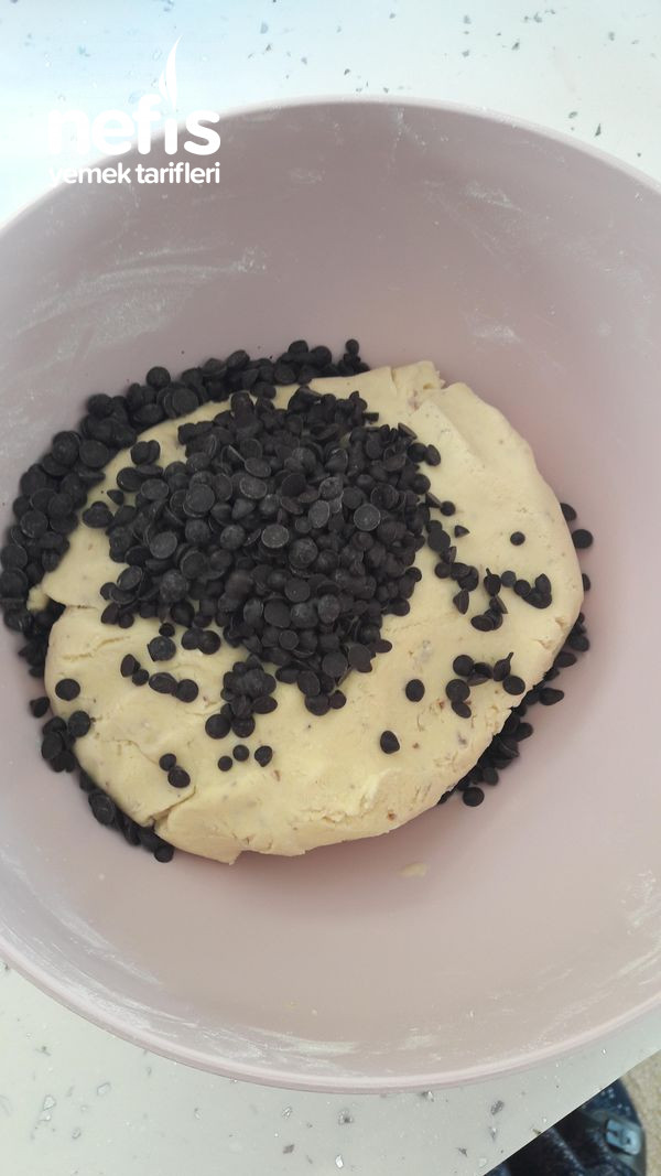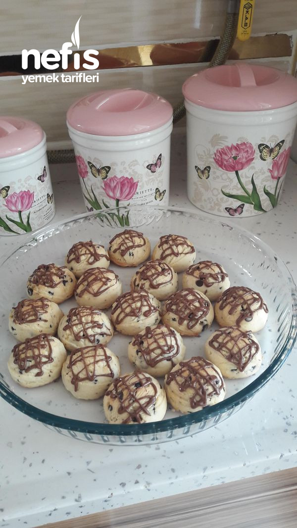 - 1 çay bardağı damla çikolata (Damla çikolata yı hamuru yapıp şekil vermeden önce dökün