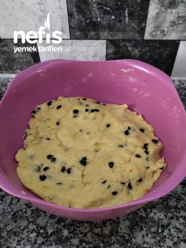 - Son olarak damla çikolatayi da ekleyip tekrar yoguruyoruz.