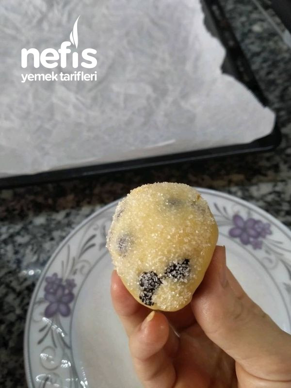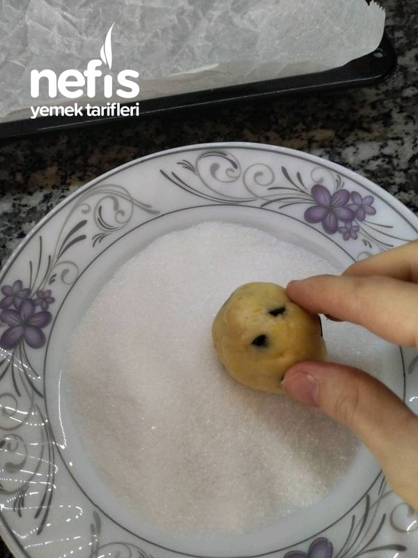 - İstediğiniz büyüklükte şekil vererek, şekere batırıp yağlı kağıt serili tepsimize koyuyoruz.