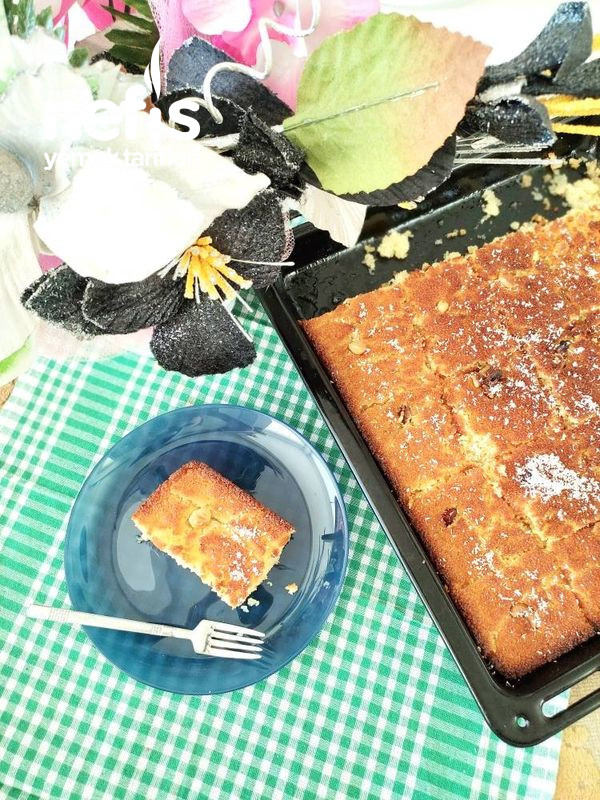 - Sıvı yağ ile hafif fırça yardımıyla tepsiyi yağlayıp harcı tepsiye ilave edelim.