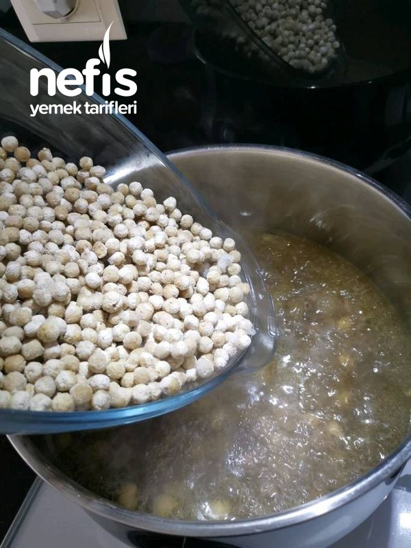 - Haşlanan et ve et suyunun içine yuvarlamaları ve haşlanmış nohutu ekliyoruz ve 25 dk kadar kaynatıyoruz.