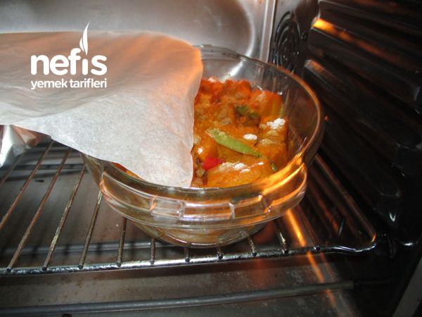 - Üzerine yağlı kağıt ile kapatalım, önceden ısıtılmış fırında 180 derecede 20 dakika pişirelim sonra yağlı kağıdı alalım 10 dakika daha pişirelim afiyet olsun.