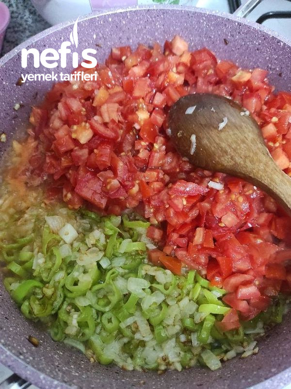 - Kavrulduktan sonra küp doğradığımız domates, tuz ve isteğe bağlı baharatta ilave edebilirsiniz domatesler yumuşayana kadar pişirelim ama suyunu çok çekmesin.