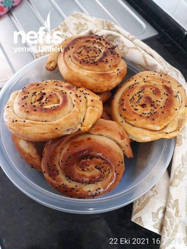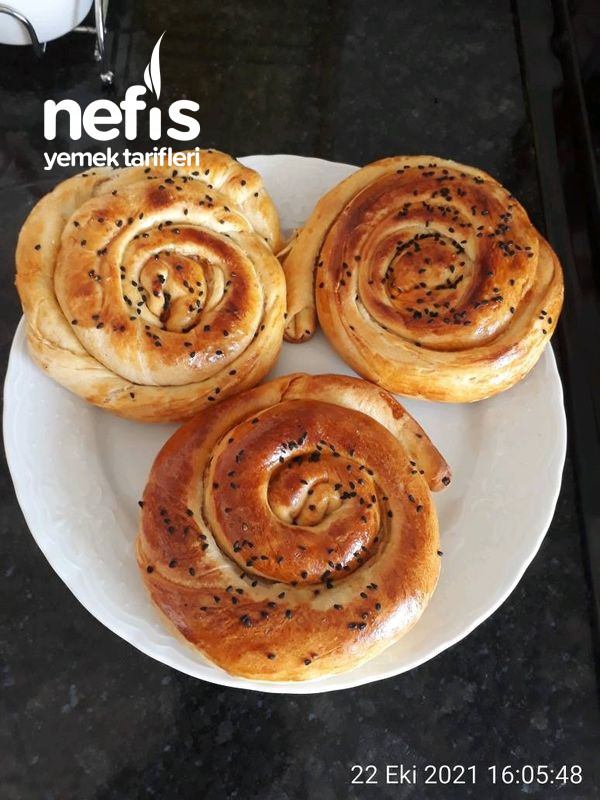 - Üzerine yumurta sarısı sürüp susamla çörek otu serpelim. Önceden ısıtılmış 180 derece fırında altı üstü kızarana kadar pişirelim.