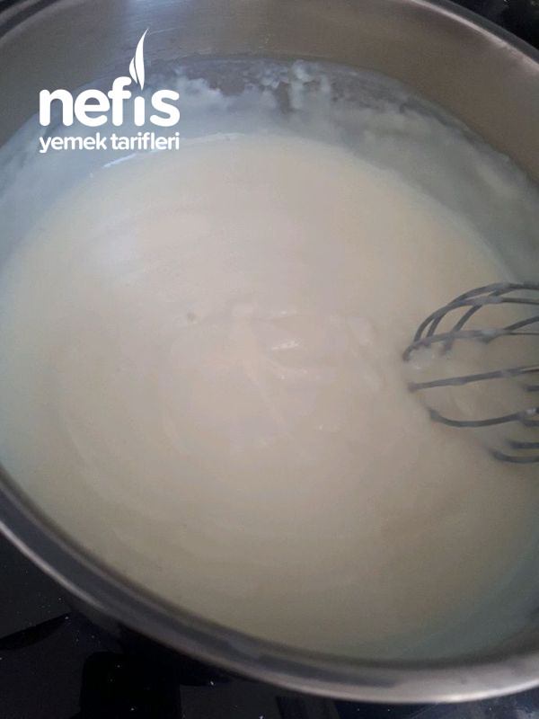 - Ondan sonra onun üstüne muhallebisini ekleyin ve en üstünde hindistan cevizine ekliyoruz ve birazcık ılımaya bırakıyoruz.