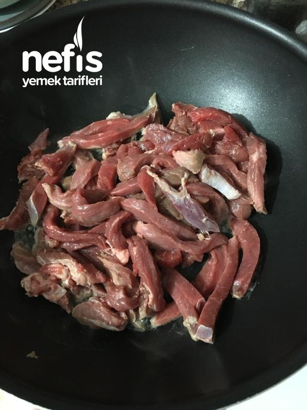 - Hafif diri kalmaları gerekiyor. Ocaktan almadan gerekirse tuz ilavesi yapıp bir iki kez çevirdikten sonra kızaran etleri de içtersine ilave edin.