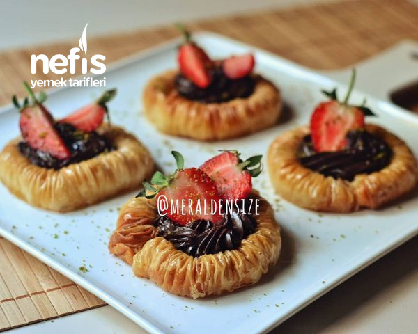 Çikolatalı Bülbül Yuvası Tarifi İçin Malzemeler 1 adet yufka (1 yufkadan 4 tane çıkıyor)5 yemek kaşığı tereyağŞerbeti için malzemeler 2 su …