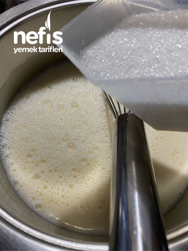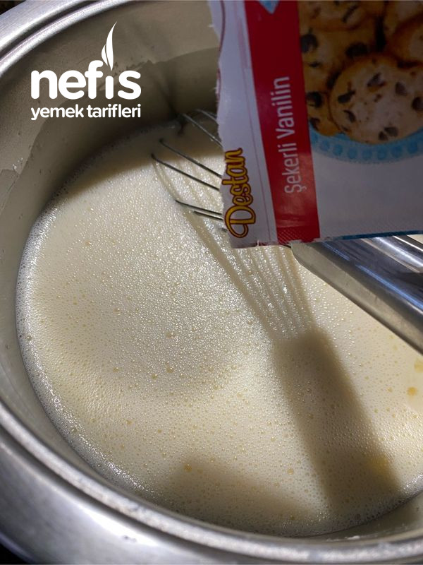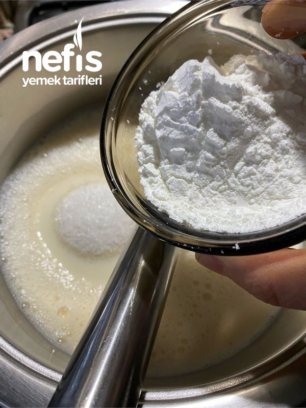 - Önce kremayı yapıyoruz. Krema hariç bütün malzemeyi tencereye alıyoruz karıştırarak pişiriyoruz soğuyunca kremayı ilave ediyoruz.