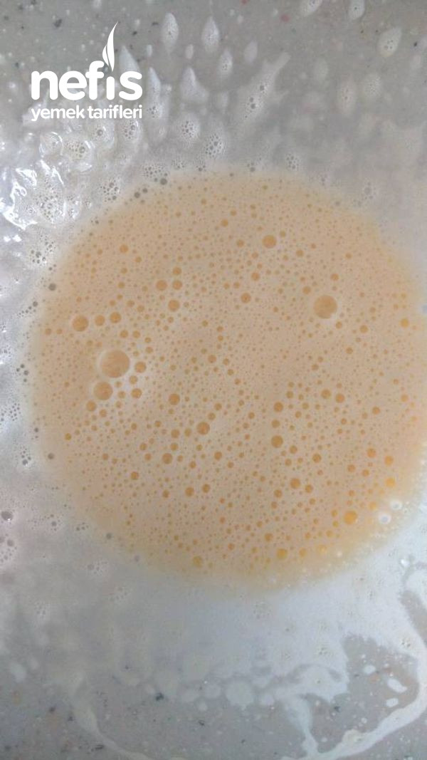 - 2 yumurta rengi iyice dönünceye kadar çırpılır.