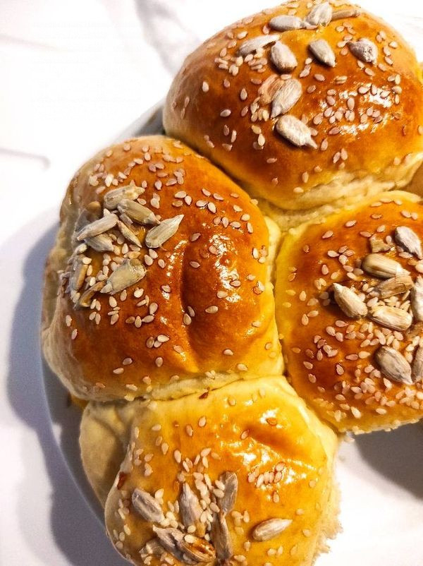 - Üzerine yumurta sarısı/ süt karışımını sürüp susam serpiştirip daha önceden ısıtılmış 180° fansız çalıştırılmış fırının orta rafına koyuyoruz.