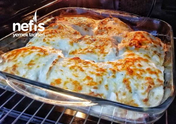 - Yağlanmış tepsiye dizin üstlerine beşamel sostan sürüp kaşar peyniri rendesi serpin.