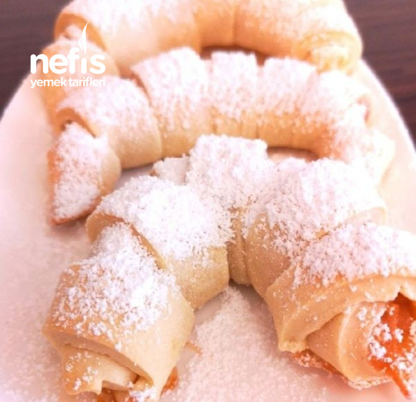 - İç harcı olan tarafı kesik olan yöne doğru rulo yapıp sarın, birazda kenarları kıvırarak hilal şeklini elde edebilirsiniz.