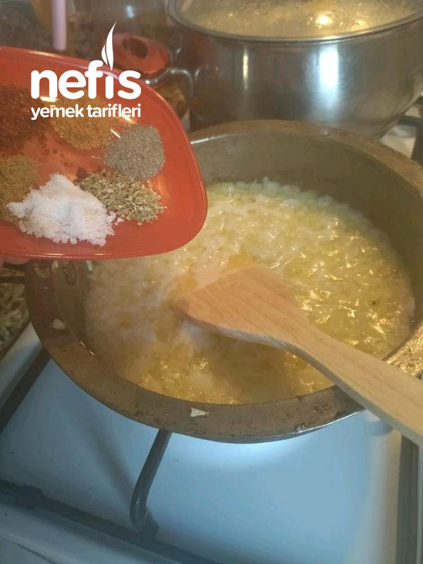 - Yarım su bardağı sıvı yağ, 1 yemek kaşığı tereyağ ile soğanı kavurun.