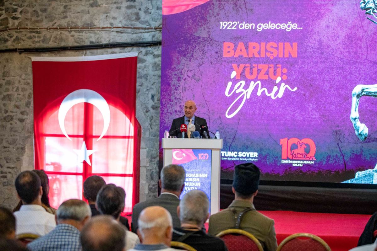 Soyer, savaşa karşı barışı ve toplumsal refah için demokrasiyi örgütlemek gerektiğini belirterek “İşte bu yüzden diyoruz ki İzmir, 8 bin 500 yıllık bir barış projesidir. Bugün sizlerle paylaştığımız 100’üncü yıl etkinliklerimiz ise barışa ve demokrasiye duyduğumuz inancın bir göstergesidir. Kentimizin kuruluşunun 100’üncü yılını en görkemli halde anmak, bizim İzmir’e, İzmirlilere ve aziz cetlerimize, kahramanlarımıza olan borcumuzdur” dedi.