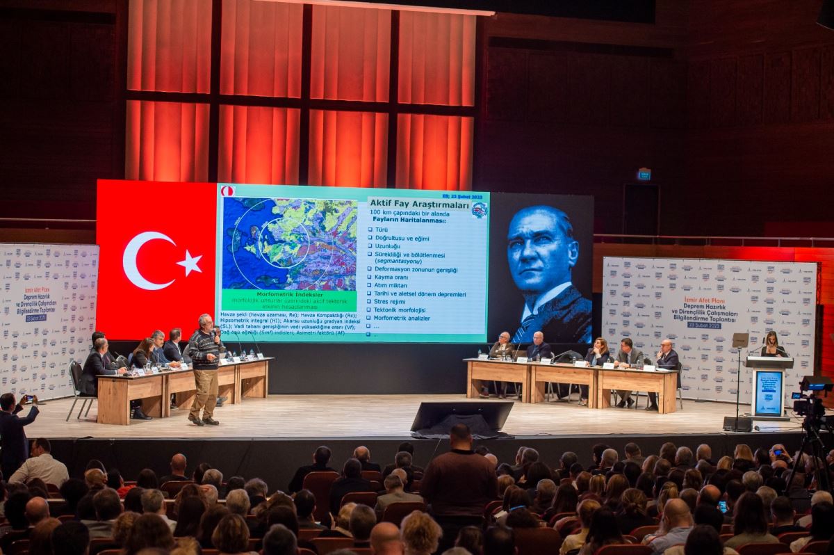 İzmir Büyükşehir Belediye Lideri Tunç Soyer’in öncülüğünde düzenlenen “İzmir Afet Planı-Deprem Hazırlık ve Dirençlilik Çalışmaları” bilgilendirme toplantısı Ahmed Adnan Saygun Sanat Merkezi’nde (AASSM) uzmanları buluşturdu. Toplantıda İzmir Büyükşehir Belediyesi bürokratları, akademisyenler ve meslek odalarının temsilcileri kentte üç yıldır yürütülen çalışmalar hakkında bilgi verdi.