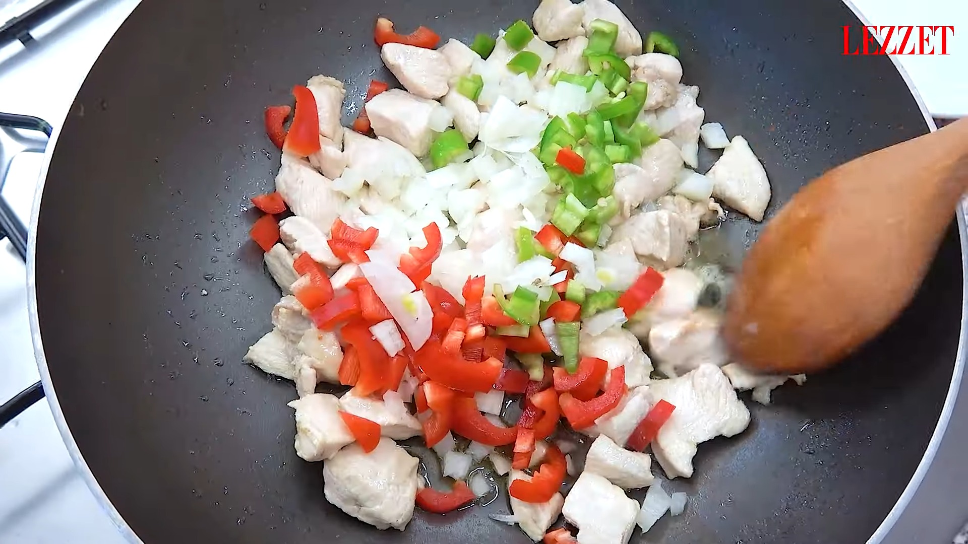 - Biber ve soğanları ince ince doğrayarak tavaya ilave edin.