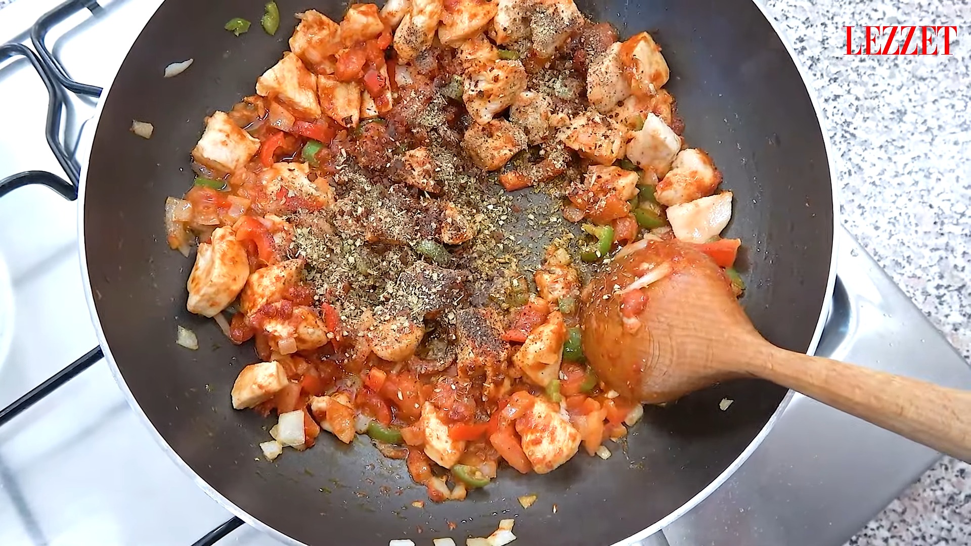 - Üzerine baharatları ilave edin ve kısık ateşte 10 dakika pişirin.
