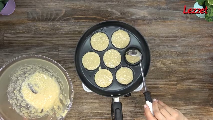 - Karışımı, yağlayıp ısıttığınız tavaya kepçeyle dökün.