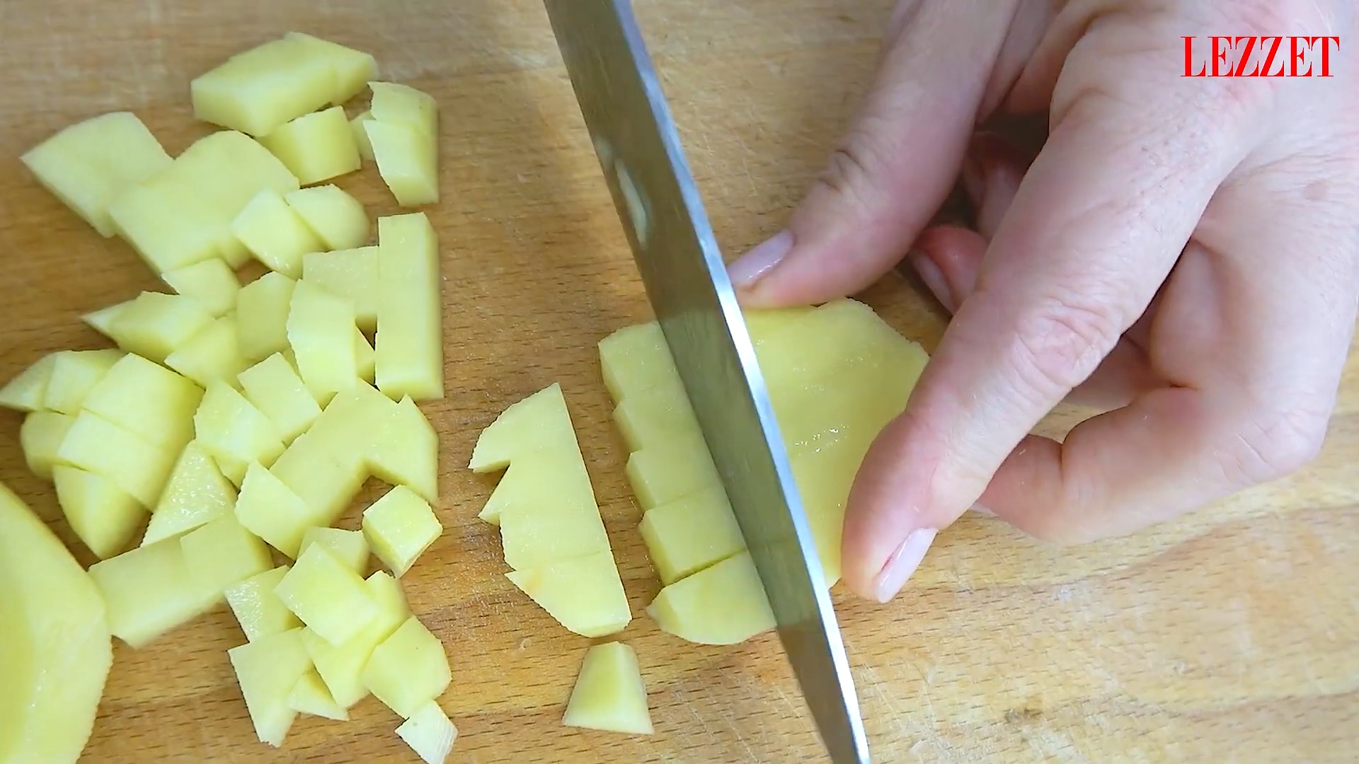 - Öncelikle bezelye dışındaki tüm sebzeleri küp küp doğrayın.