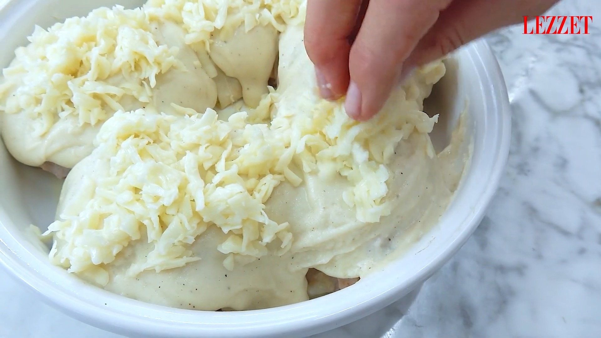 - Sosun üzerine rendelenmiş kaşar peyniri ekleyin. Önceden ısıtılmış 190 dereceli fırında, kaşar peyniri eriyip kızarana kadar pişirin.