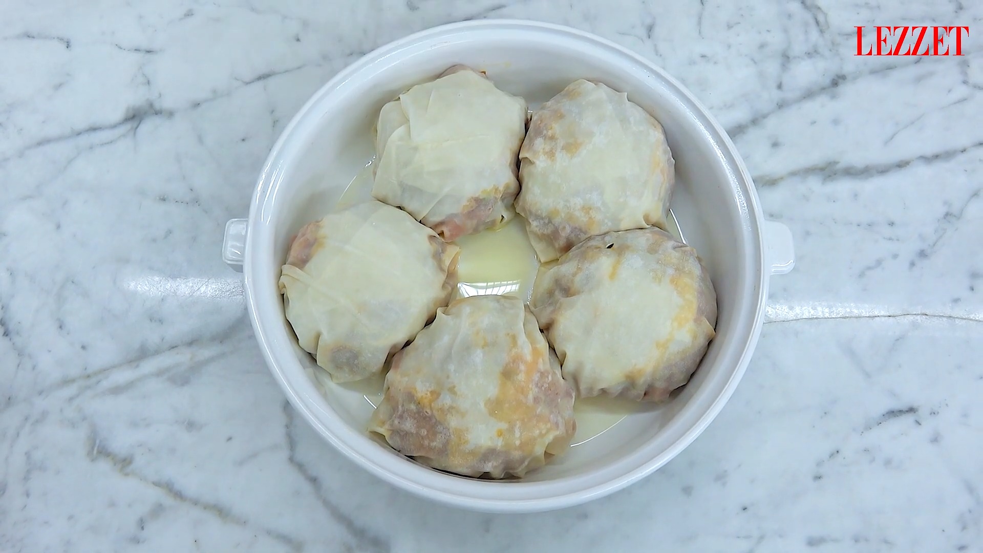 - Tüm yufkalara aynı işlemi uyguladıktan sonra, bohçaları fırın kabına birbirine yakın olacak biçimde yerleştirin.