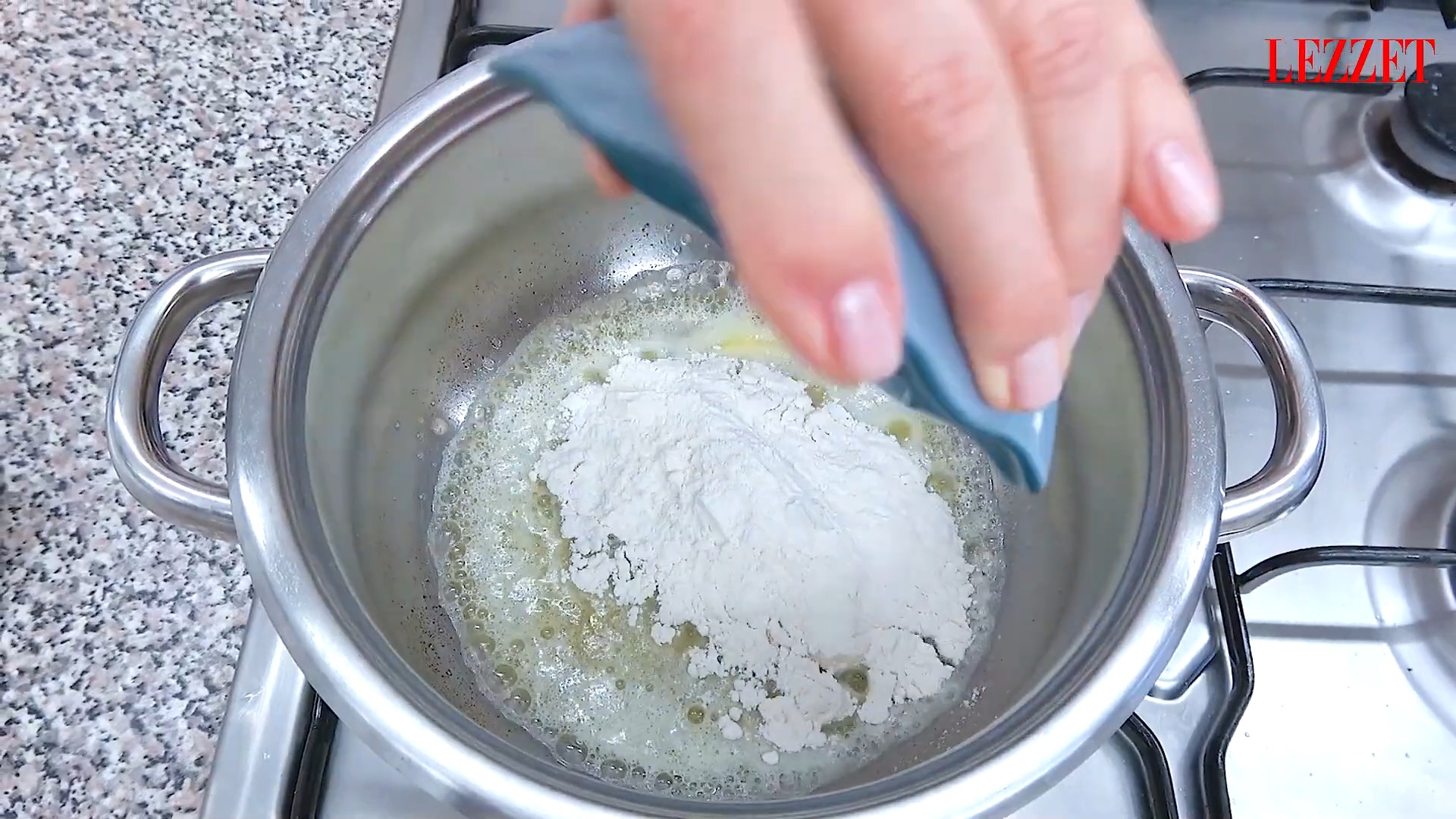 - Beşamel sosu hazırlamak için tavada tereyağını eritin ve üzerine un ekleyerek kokusu çıkana kadar kavurun.
