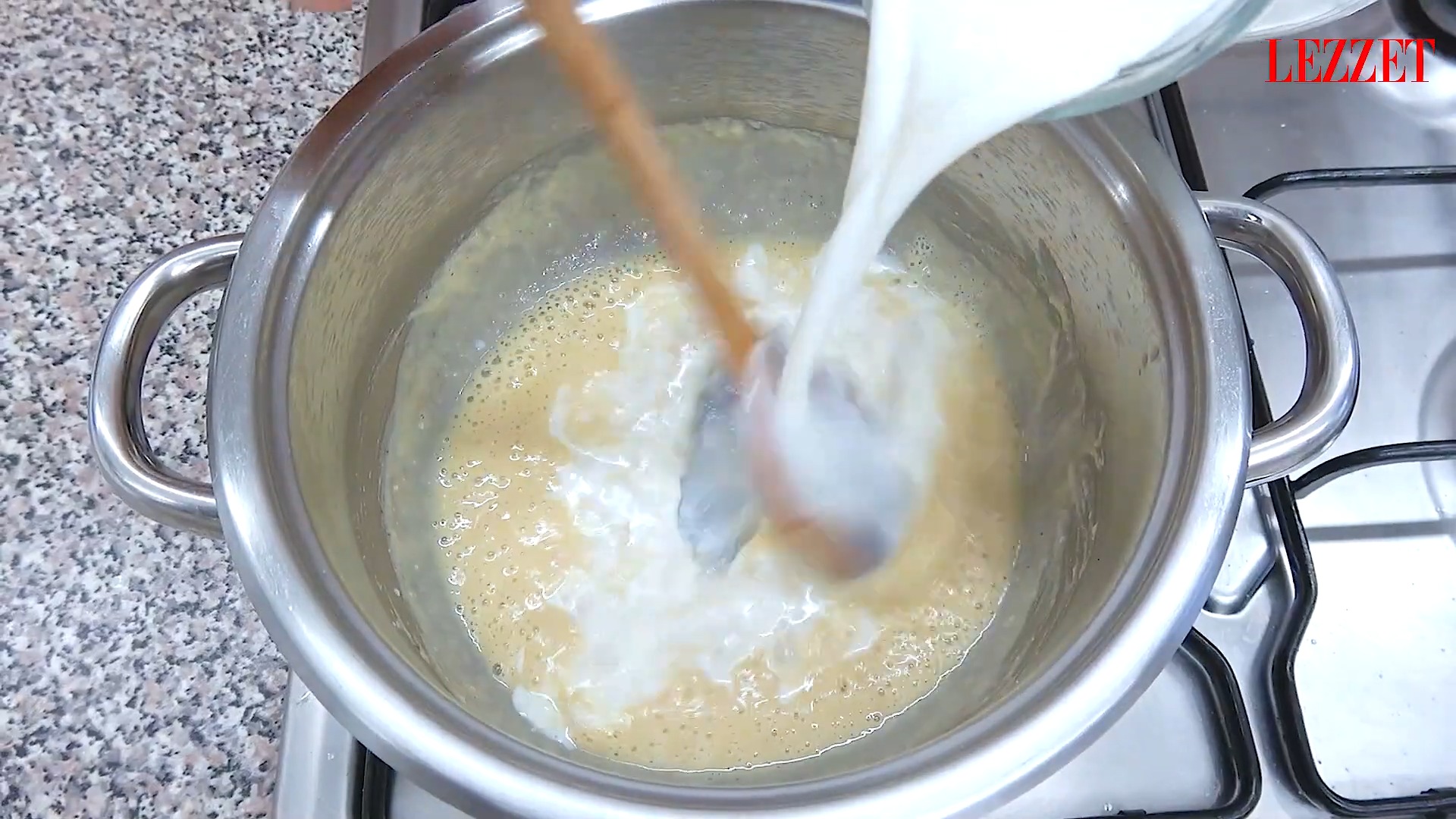 - Üzerine azar azar süt ekleyin ve bu esnada mutlaka sosu karıştırın.
